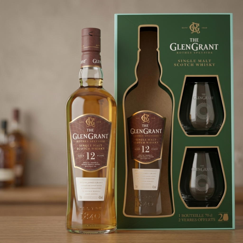 Glen Grant 12 Years is een Speyside single malt die binnen Vault No.5 logisch landt als een klassieke, toegankelijke whisky met duidelijke herkomst en een vriendelijke stijl. In deze uitvoering komt de fles als giftset met twee glazen, waardoor het product niet alleen inhoudelijk interessant is, maar ook direct sterker wordt als cadeau of compleet whisky-moment.