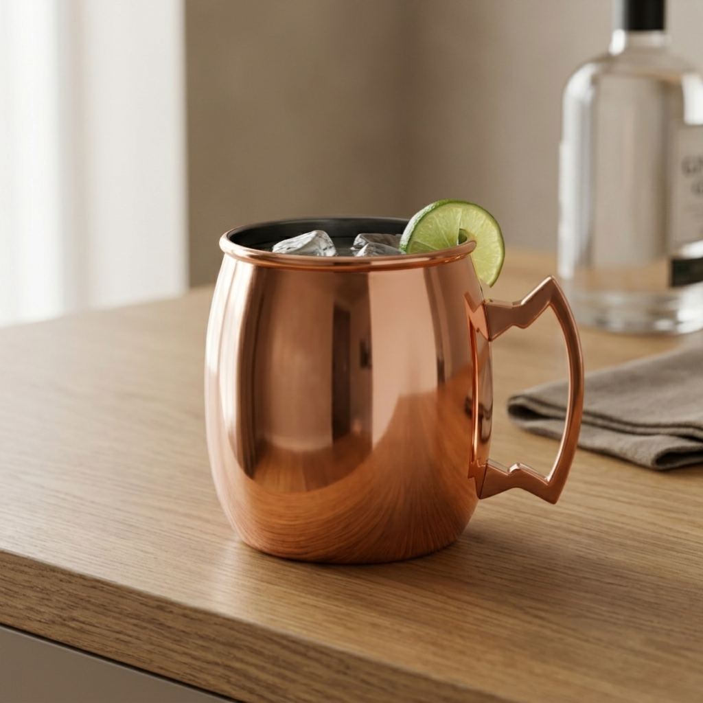 Met 450 ml inhoud is er voldoende ruimte voor ijs, mixer en garnish, terwijl de mug visueel compact en krachtig blijft ogen. De copper afwerking geeft bovendien meer warmte en karakter dan regulier glaswerk, waardoor dit product ook goed werkt als cadeau-item of als opvallende aanvulling binnen een thuisbar.